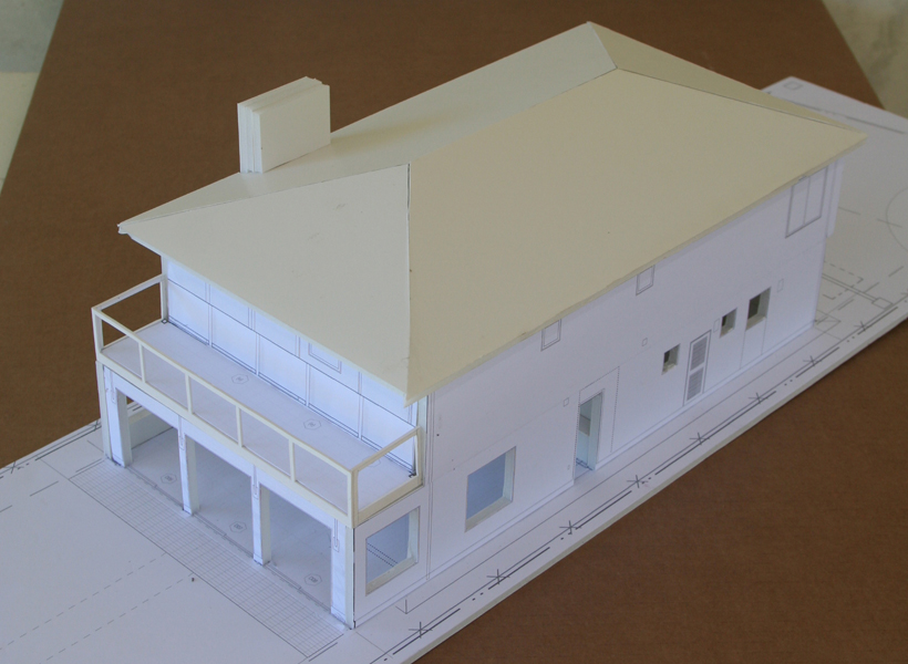 Architectural scale conceptual model of two story beach front home addition and 1st floor remodel designed by ENR architects, Malibu, CA 90265